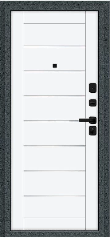 Надежная входная Дверь Браво Техно/SBlack Старк антрацит/White Silk премиум класса по цене 36 701 руб. Большая толщина стали защитит от проникновения в ваш дом, квартиру или коттедж. Используется очень качественная фурнитура: замки, цилиндры, ручки, защелки. Покрытие и отделка двери изготовлено под внимательным контролем производителя. Дверь имеет долгий срок службы и гарантию.